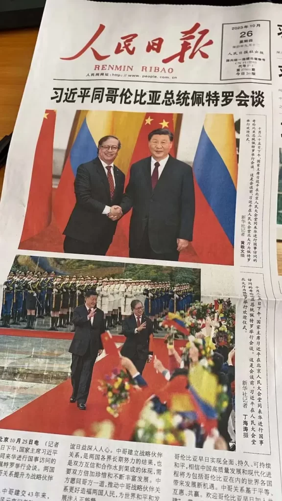Carátula del Diario del Pueblo al siguiente día de la visita del presidente Gustavo Petro al mandatario Xi Jinping, 26 de octubre de 2023. Foto: Melisa Murcia.