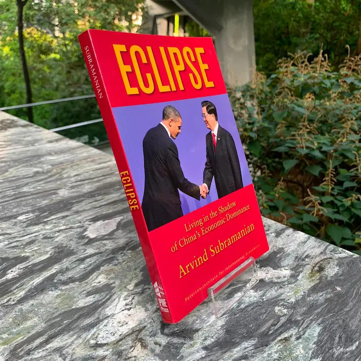Carátula del libro Eclipse : Living in the Shadow of China’s Economic Dominance (2011), del autor Arvind Subramanian, publicado por el Peterson Institute for International Economics. Fuente: https://shop.asiasociety.org.hk/products/eclipse-living-in-the-shadow-of-chinas-economic-dominance.