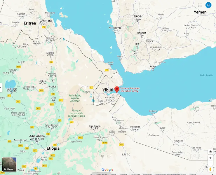 La base de apoyo del Ejército Popular de Liberación (China) en Yibuti, país de África oriental. Imagen: Google Maps.